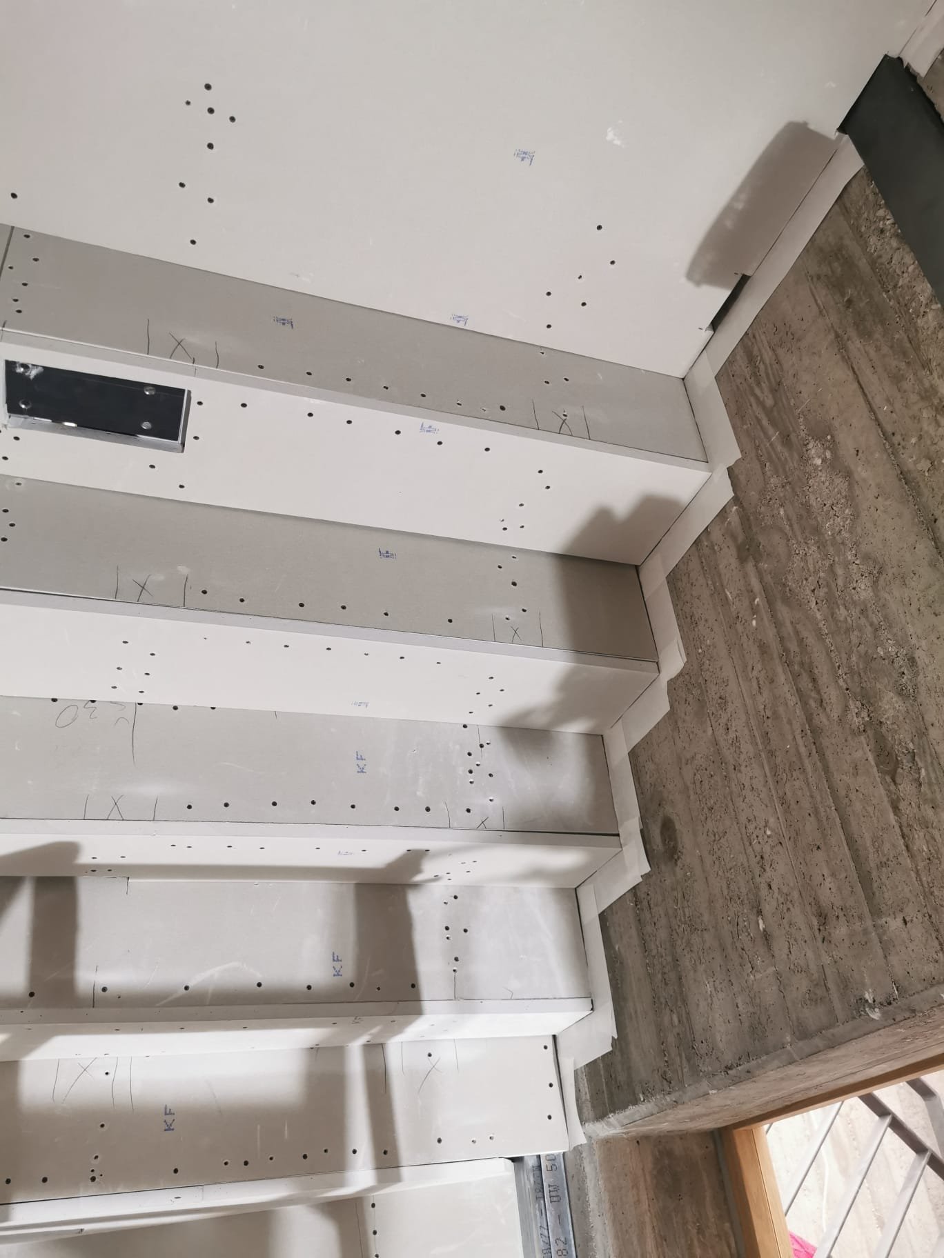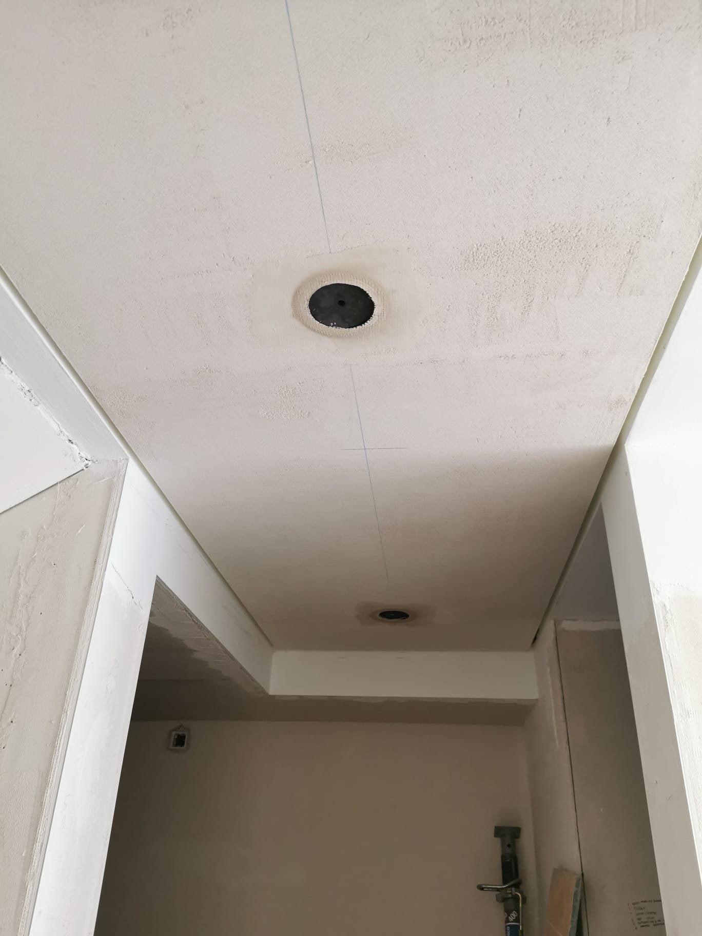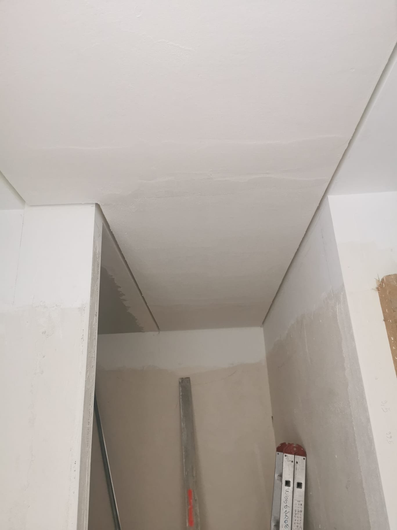 Abgehängte Decken, Trennwände, Spachtelarbeiten (Q1–Q4) sowie Ausschnitte für Spots – millimetergenau und staubarm umgesetzt.