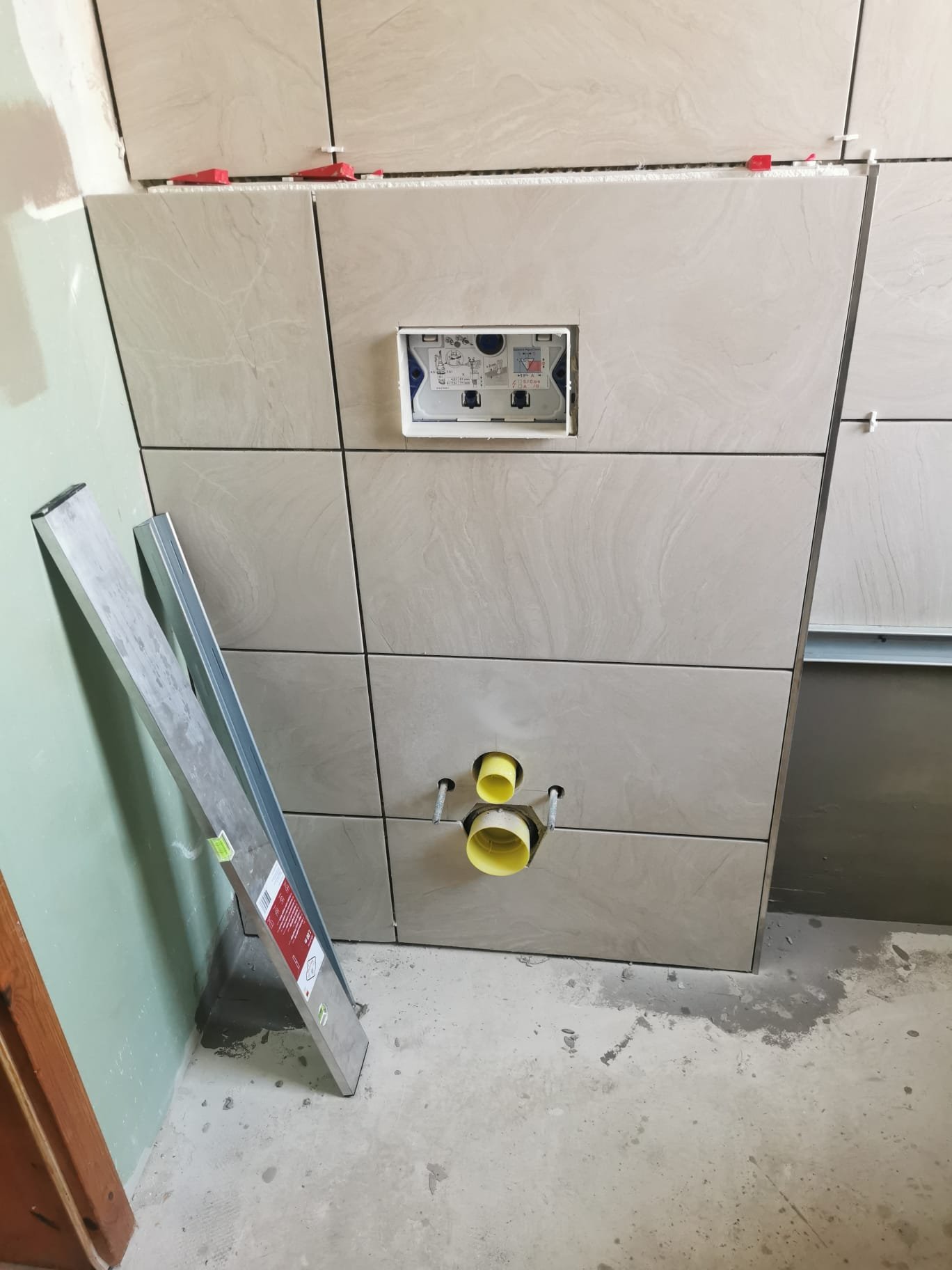 Vorwand-Installationen, Feuchtraum-Trockenbau, Abdichtung und präzises Verfliesen – bereit für Sanitär & Armaturen.